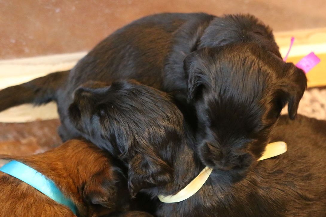 Nun sind die Kleinen drei Wochen alt und hatten schon mächtig viel Besuch gehabt. Die Wurfkiste ist ihnen schon lange zu klein geworden und ihren Auslauf haben wir schon dreimal vergrößert.  Sie sind neugierig und würden am liebsten schon den Wintergarten erkunden, was leider wegen den Temperaturen noch nicht geht. Die erste Wurmkur haben sie gut überstanden, Begeisterung sieht allerdings anders aus. Nun kommt fast jeden Tag Besuch und sie lernen die verschiedensten Menschen kennen, Junge, Alte, Große und Kleine. Auch kommen jeden Tag neue Spielsachen hinzu, damit sie auch verschiedene Materialien kennen lernen. Sie spielen und raufen nun schon miteinander und man sieht jeden Tag ihre Fortschritte. Heute war wieder Fototermin, die Bilder kommen in den nächsten Tagen.