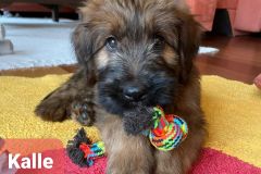 Ich bin Lennox vom Wandersmann und bin jetzt neun Monate alt, ich wiege 26,5 Kilo und bin 66 cm groß. Frauchen sagt ich wäre voll in der Pubertät, was auch immer das bedeutet. Ich spiele am liebsten mit meiner besten Freundin Cara vom Wandersmann. Cara ist ein Pyrenäen Schäferhund und wird jetzt bald zwei Jahre alt. Frauchen sagt ic ich nicht ausgelastet deshalb macht sie jetzt mit mir und Cara Suchen. Wir müssen Herrchen suchen und dafür bekommen wir eine Belohnung, Cara kann es schon richtig gut, ich habe jetzt erst damit angefangen.