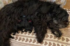Am Freitag den 15.10.2021 um 4.01 Uhr ging es los und Talulah unser Wirbelwind , hatte es wie immer eilig, den in nur 130 Minuten waren alle sechs Welpen auf der Welt, Drei stramme Buben mit einem Gewicht von 325, 324 und 343 Gramm und drei Mädels mit 321, 259 und 226 Gramm. Alle waren gleich munter und auf dem Weg zur Milchbar. Um 6.15 nachdem der letzte Welpe geboren war, warteten wir trotzdem noch drei Stunden den laut Ultraschall wurden ja mehr Welpen gesehen.